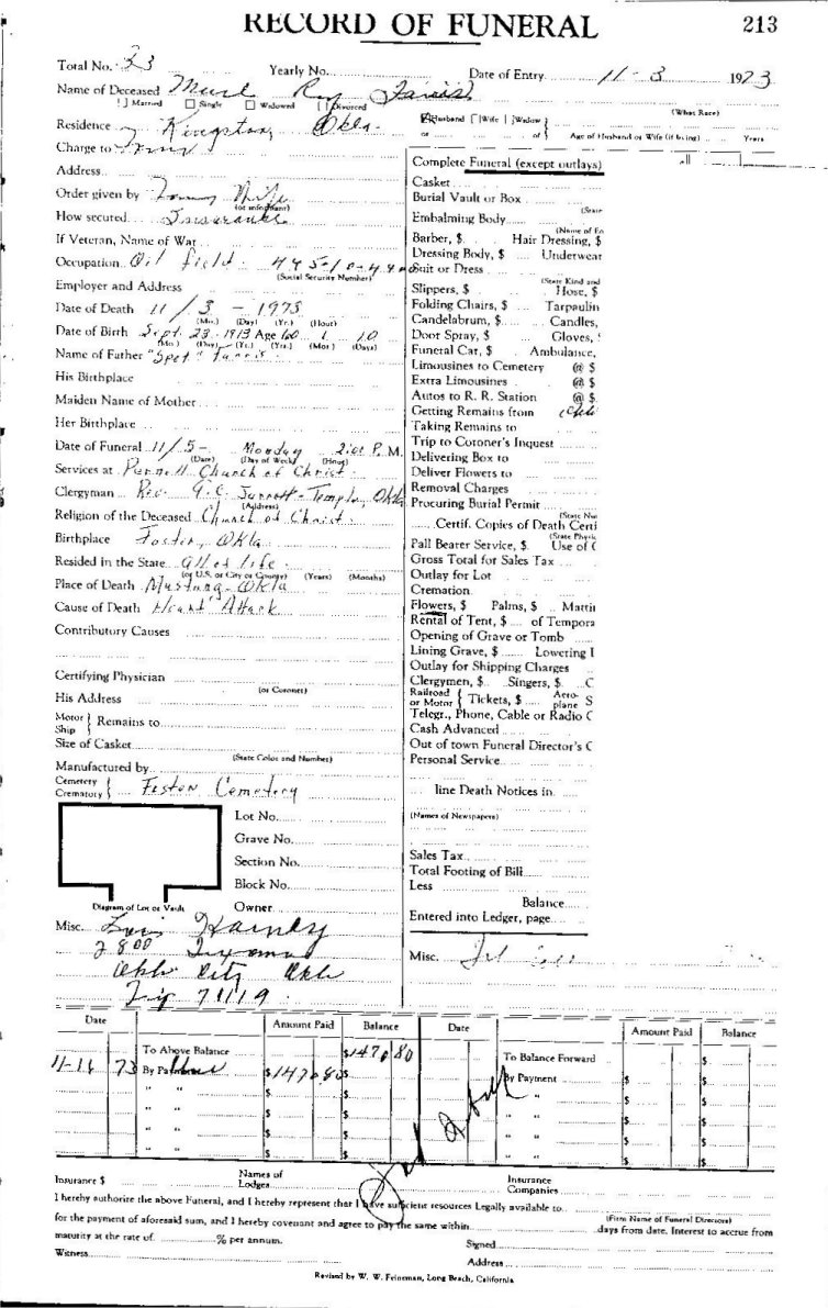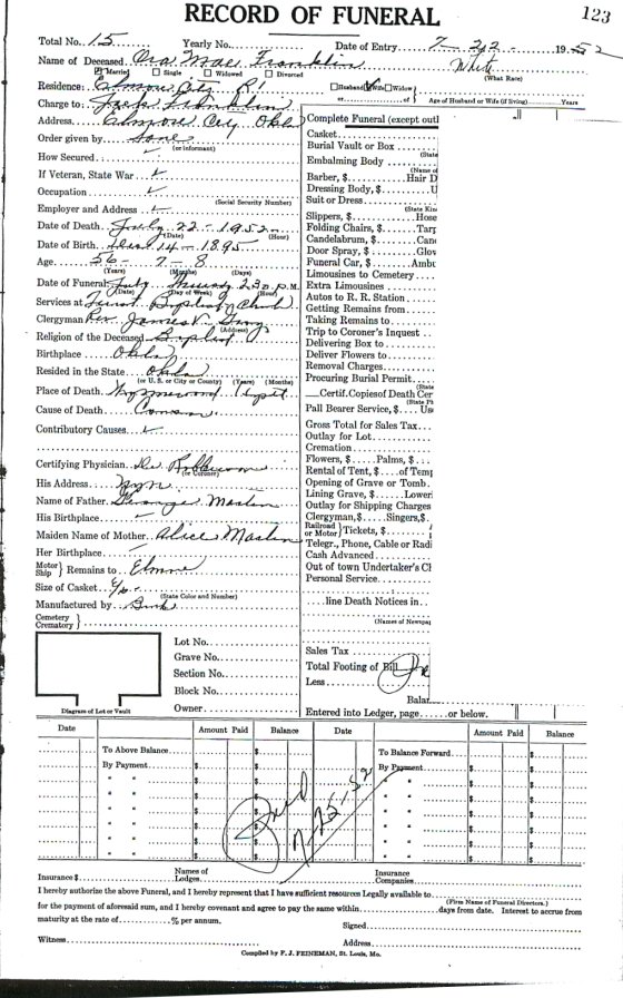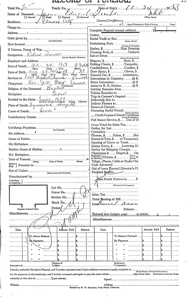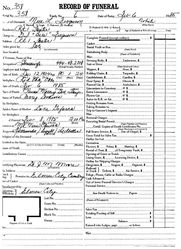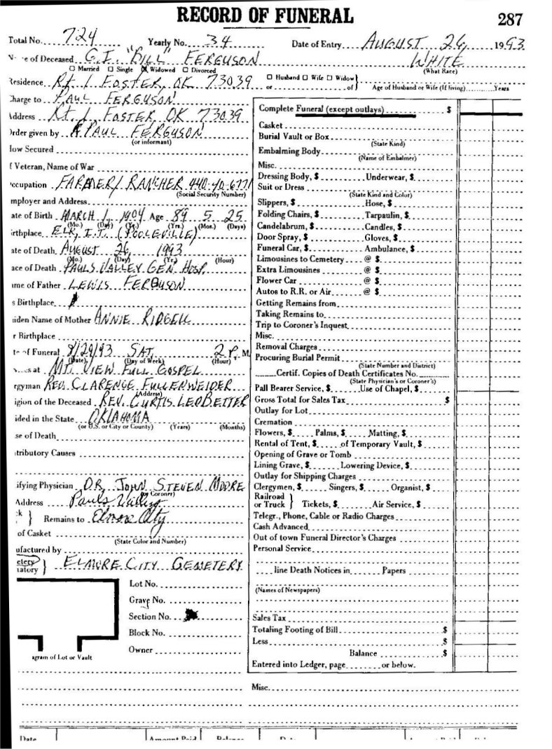 Elmore City Funeral Home Records