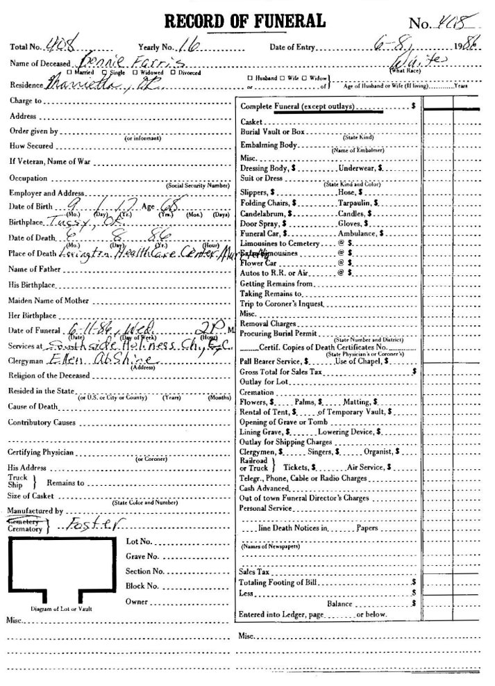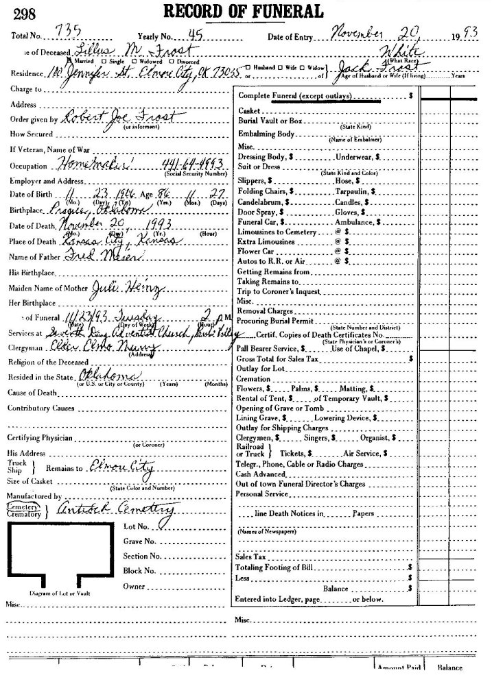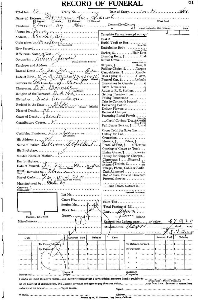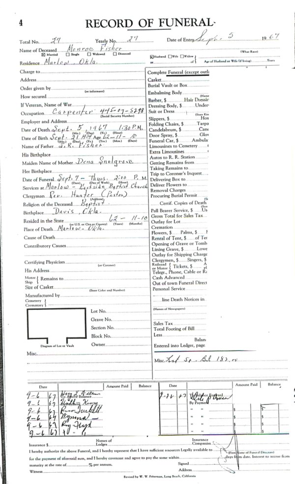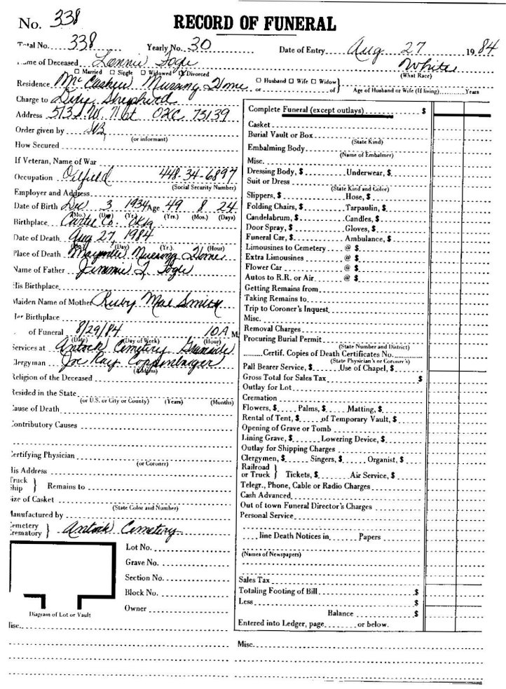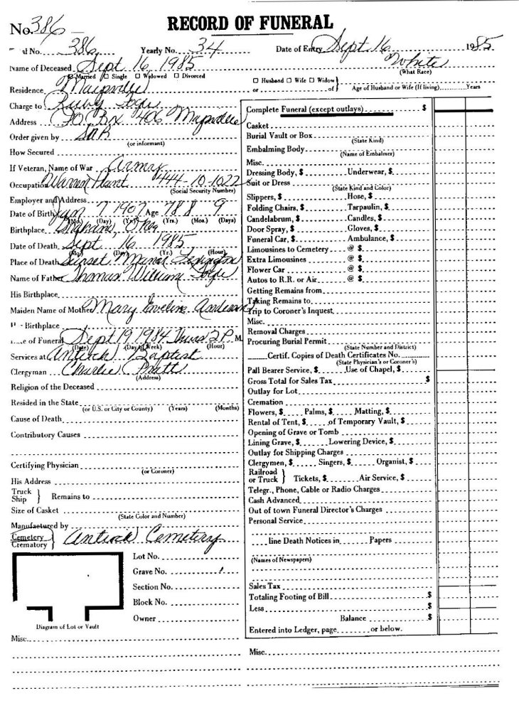 Elmore City Funeral Home Records