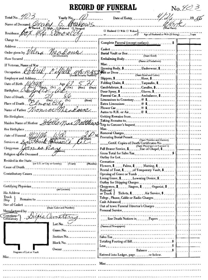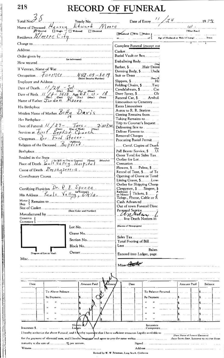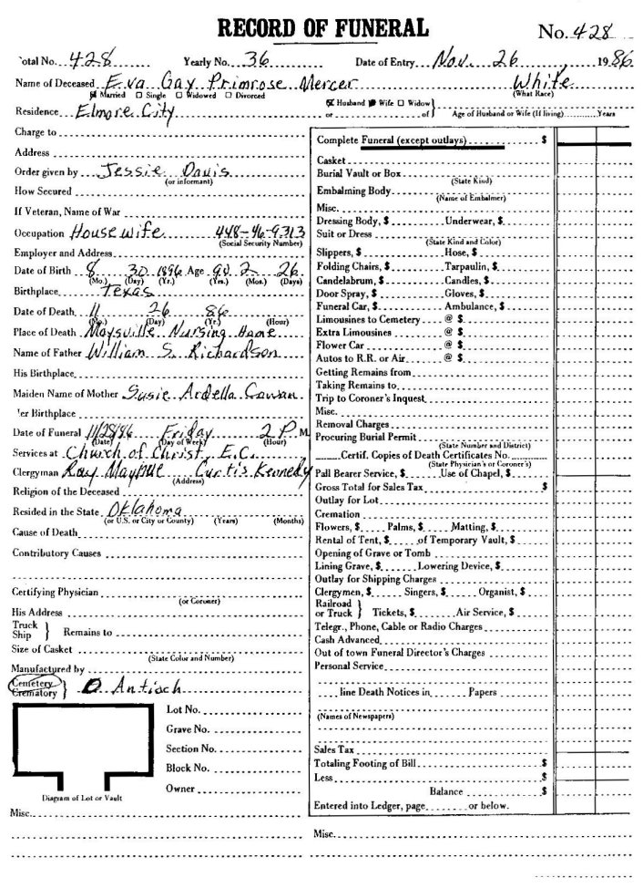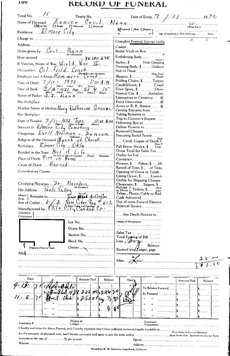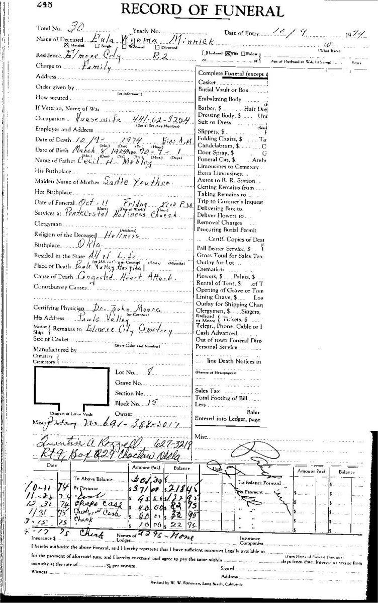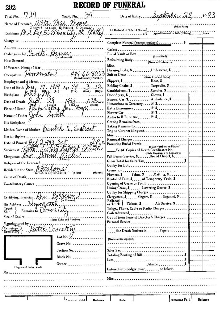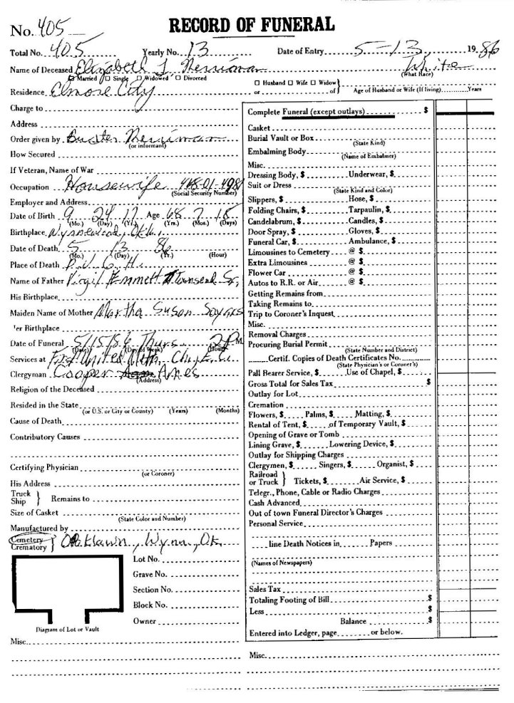Elmore City Funeral Home Records