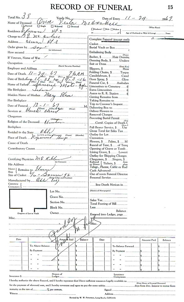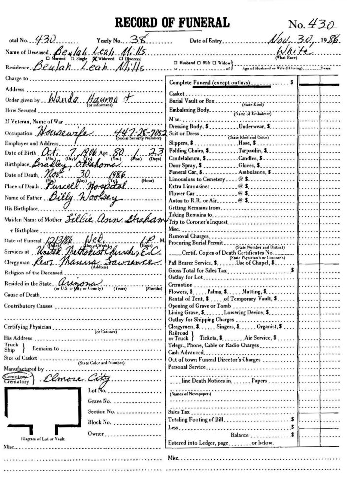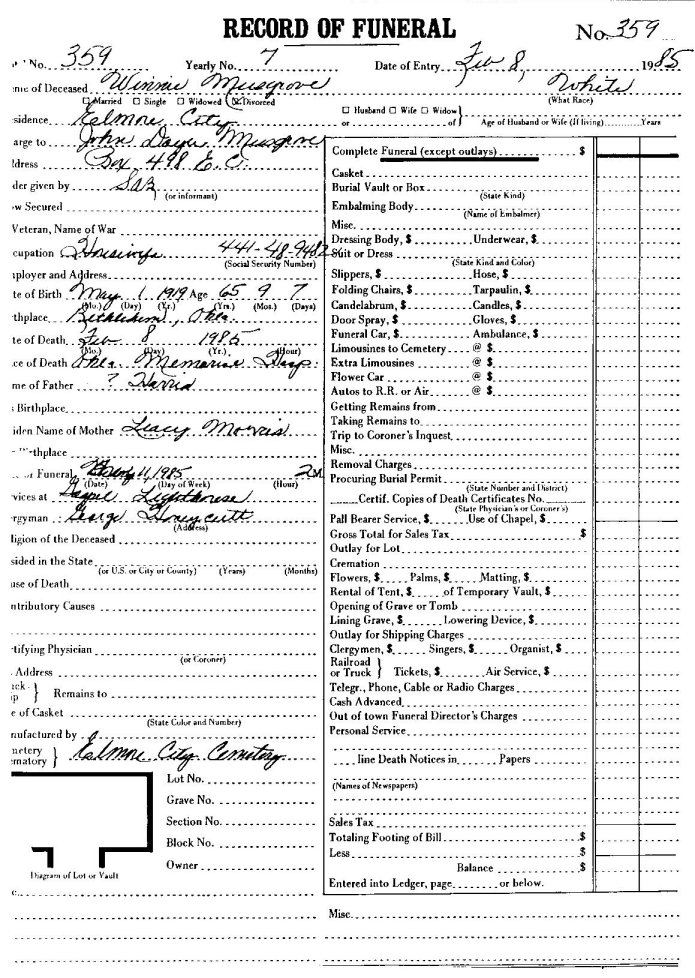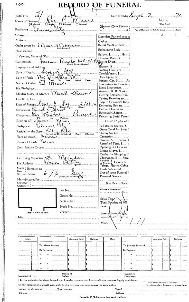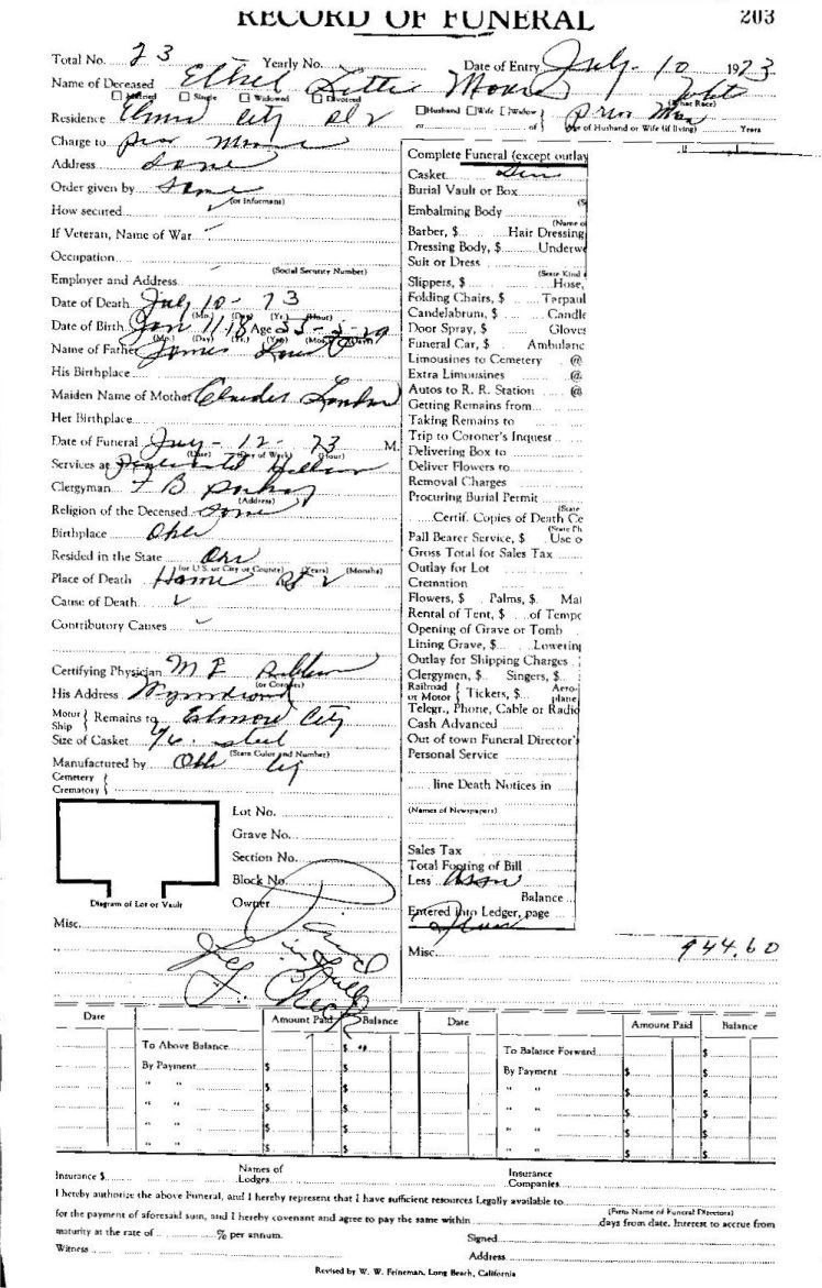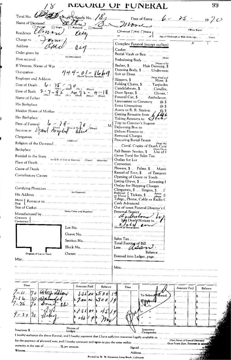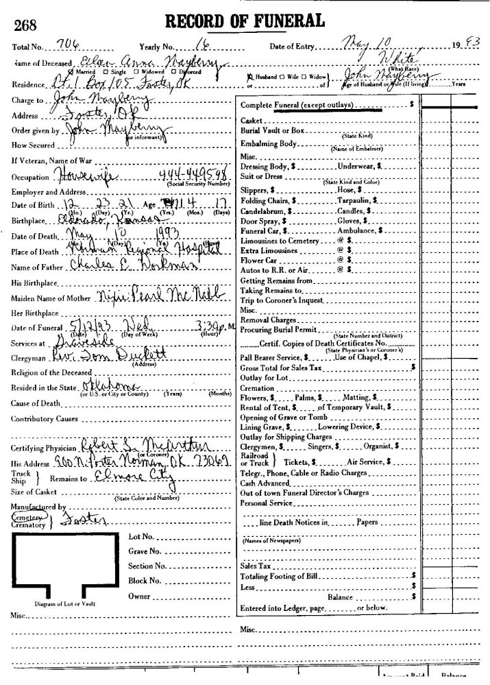 Elmore City Funeral Home Records