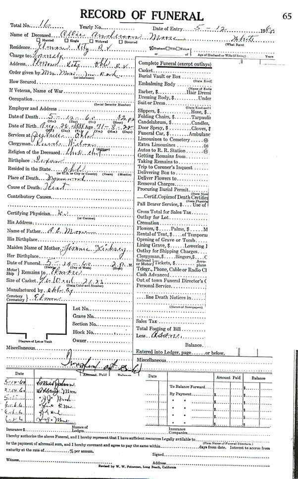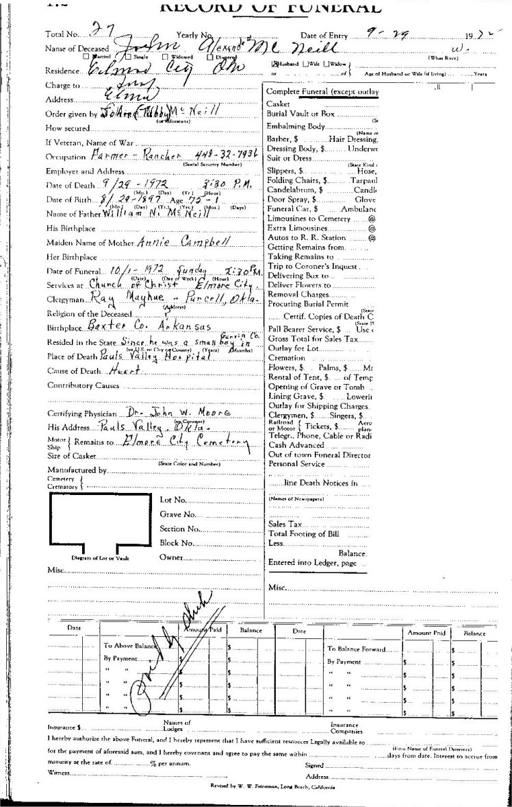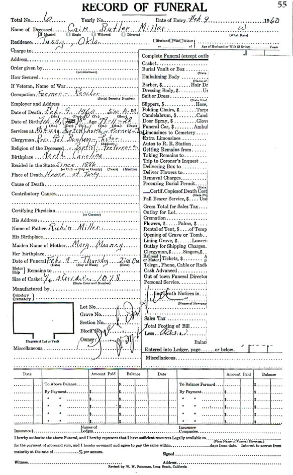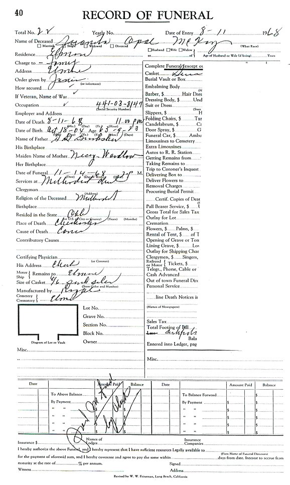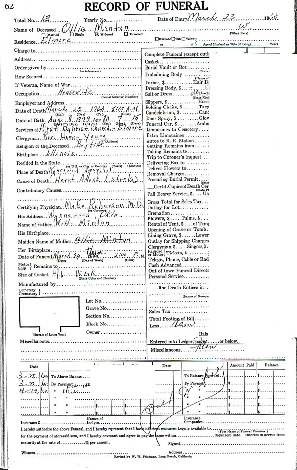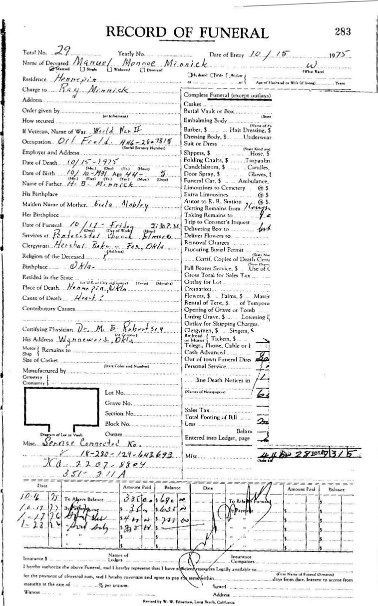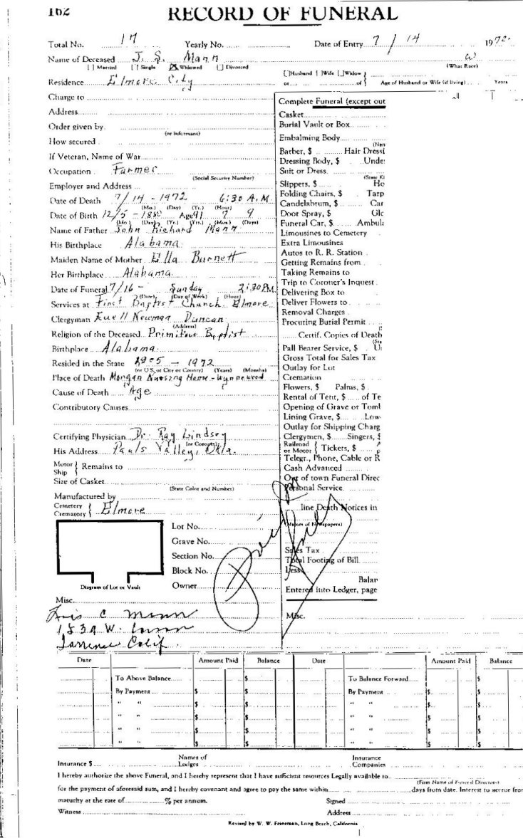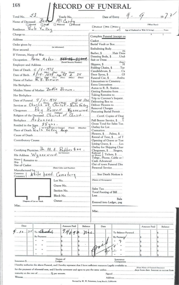 Elmore City Funeral Home Records