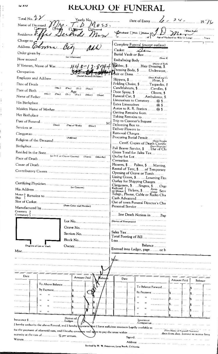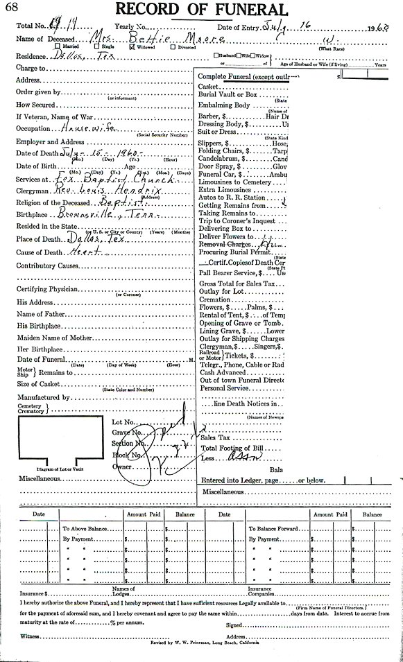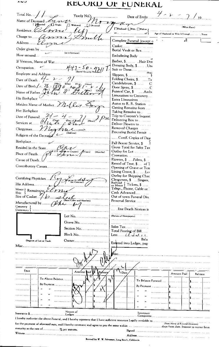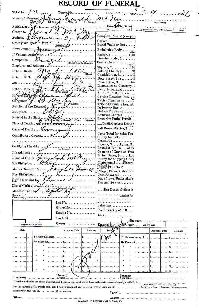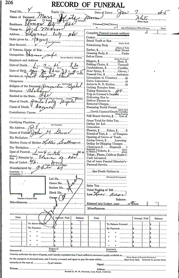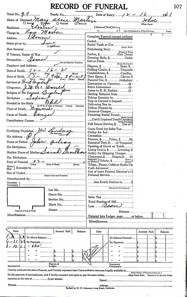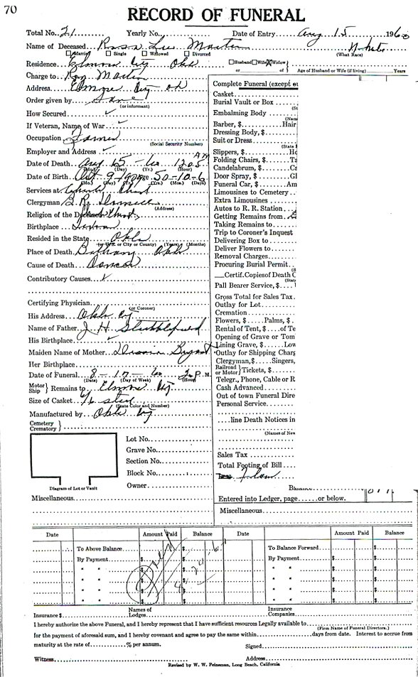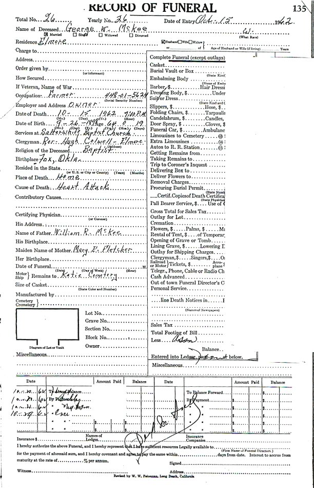 Elmore City Funeral Home Records