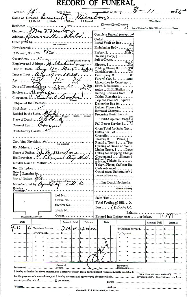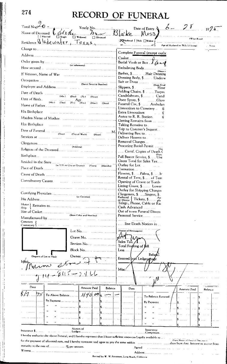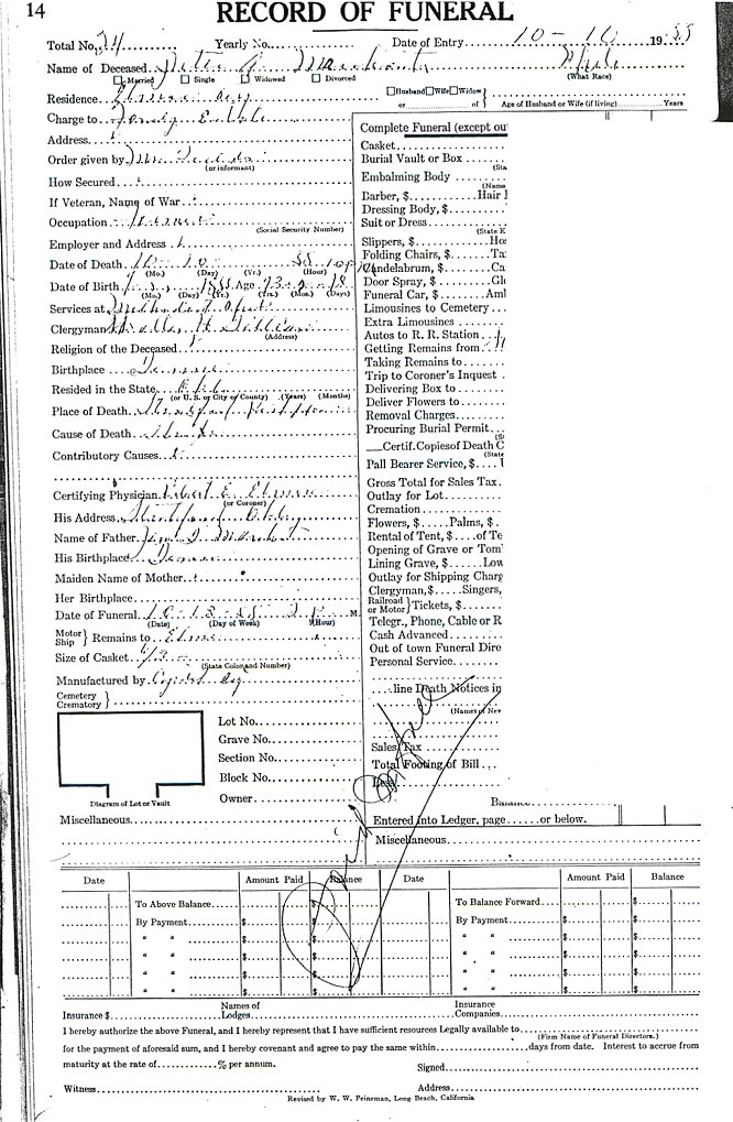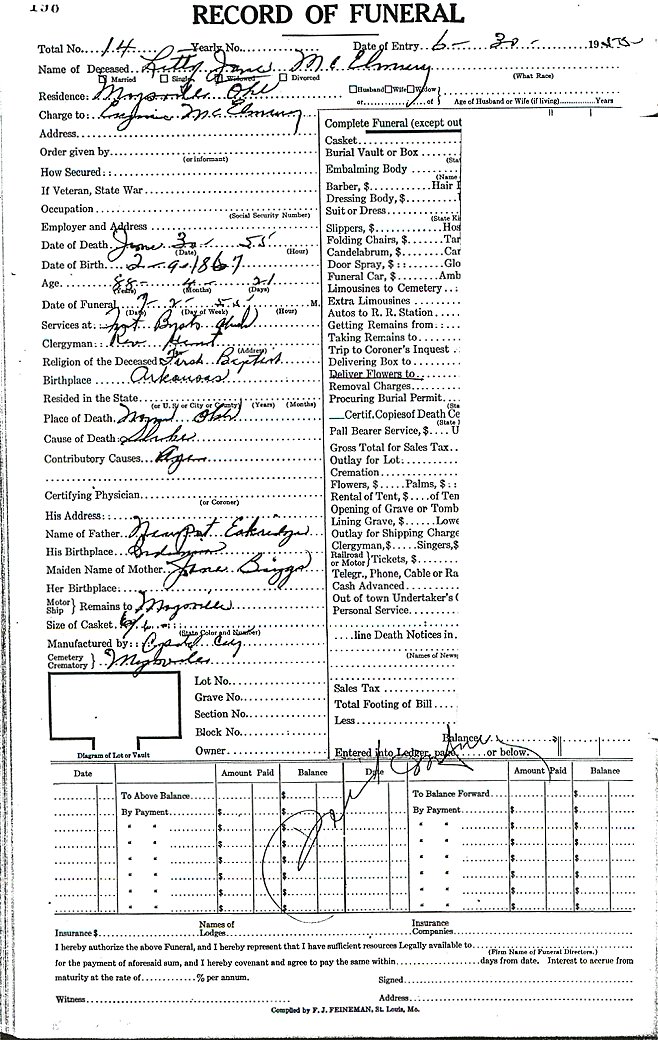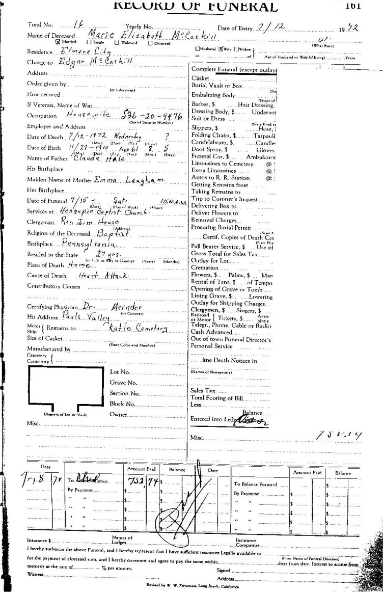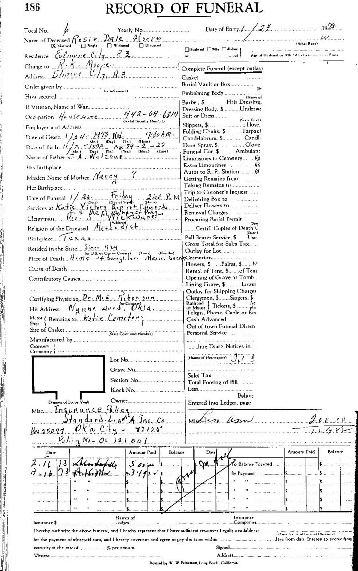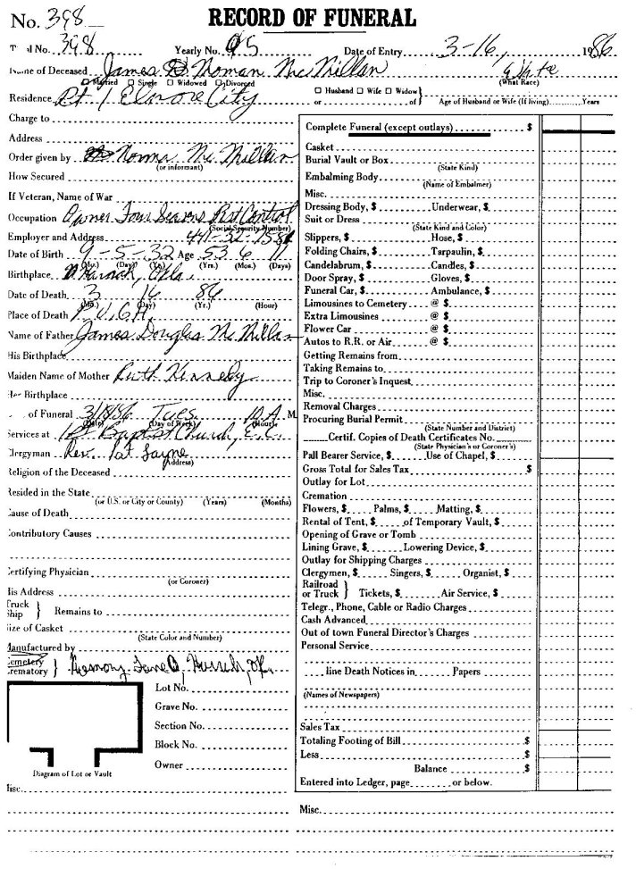 Elmore City Funeral Home Records