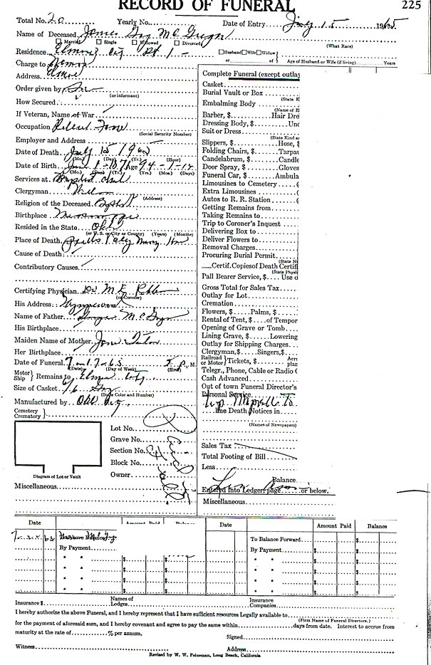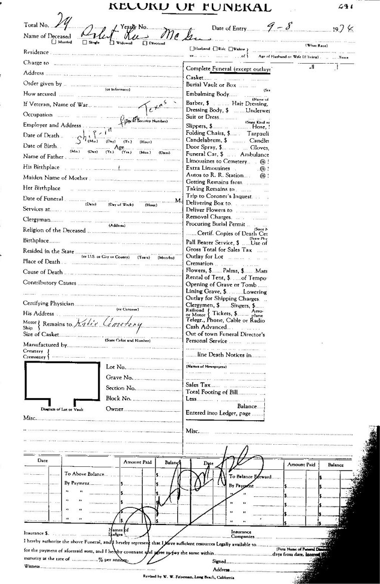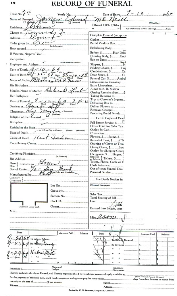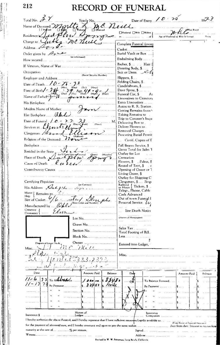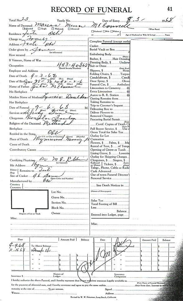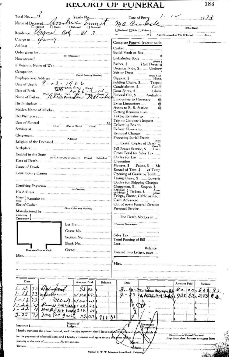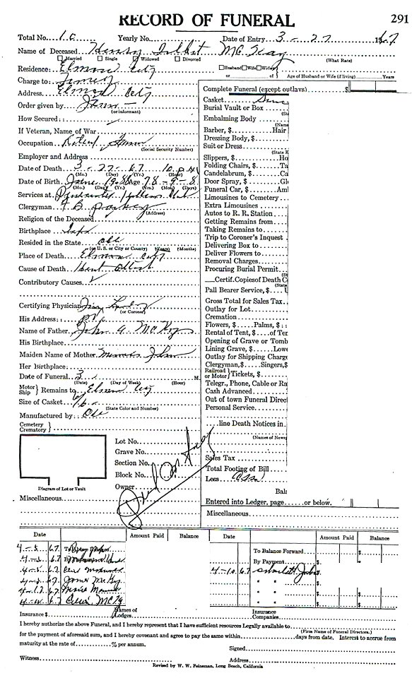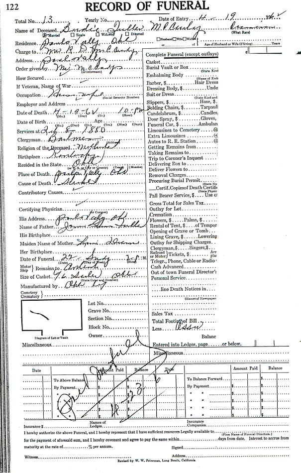Elmore City Funeral Home Records