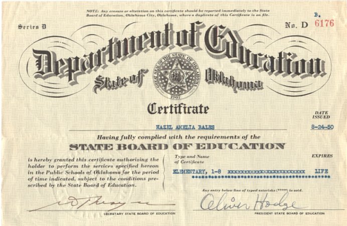 I was born in 1908 at Royal, Oklahoma. There is no Royal, Oklahoma now. Nineteen years later in August, I started my first day of school as a teacher.