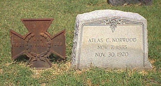 Private Company B, 15th Regiment Texas Cavalry Born November 7, 1835 in North Carolina Died November 30, 1920 in Wynnewood Atlas C. Norwood is buried at His application for the Cross of Honor shows him as being in Co. A, but other records indicate Co. B
