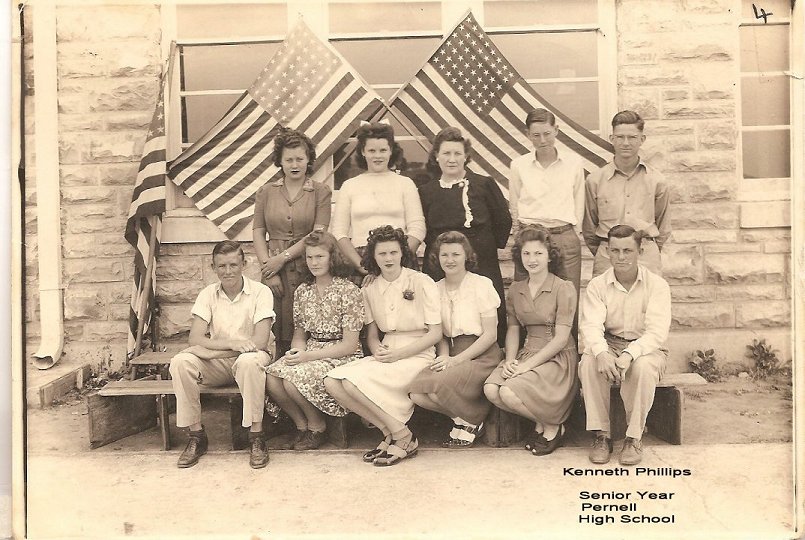 If I knew the name of the school or person in them them I added it to the picture. I am not too sure of the dates but I can tell you Dorthy was born in 1919, Larry was born in 1937, Doyle and Kenneth was born between 1930 and 1936 so that can help you estimate the age of the pictures. My father is Larry Phillips and he is in a couple of these picture the rest are his brothers and sister and there is a sister in law in there too.