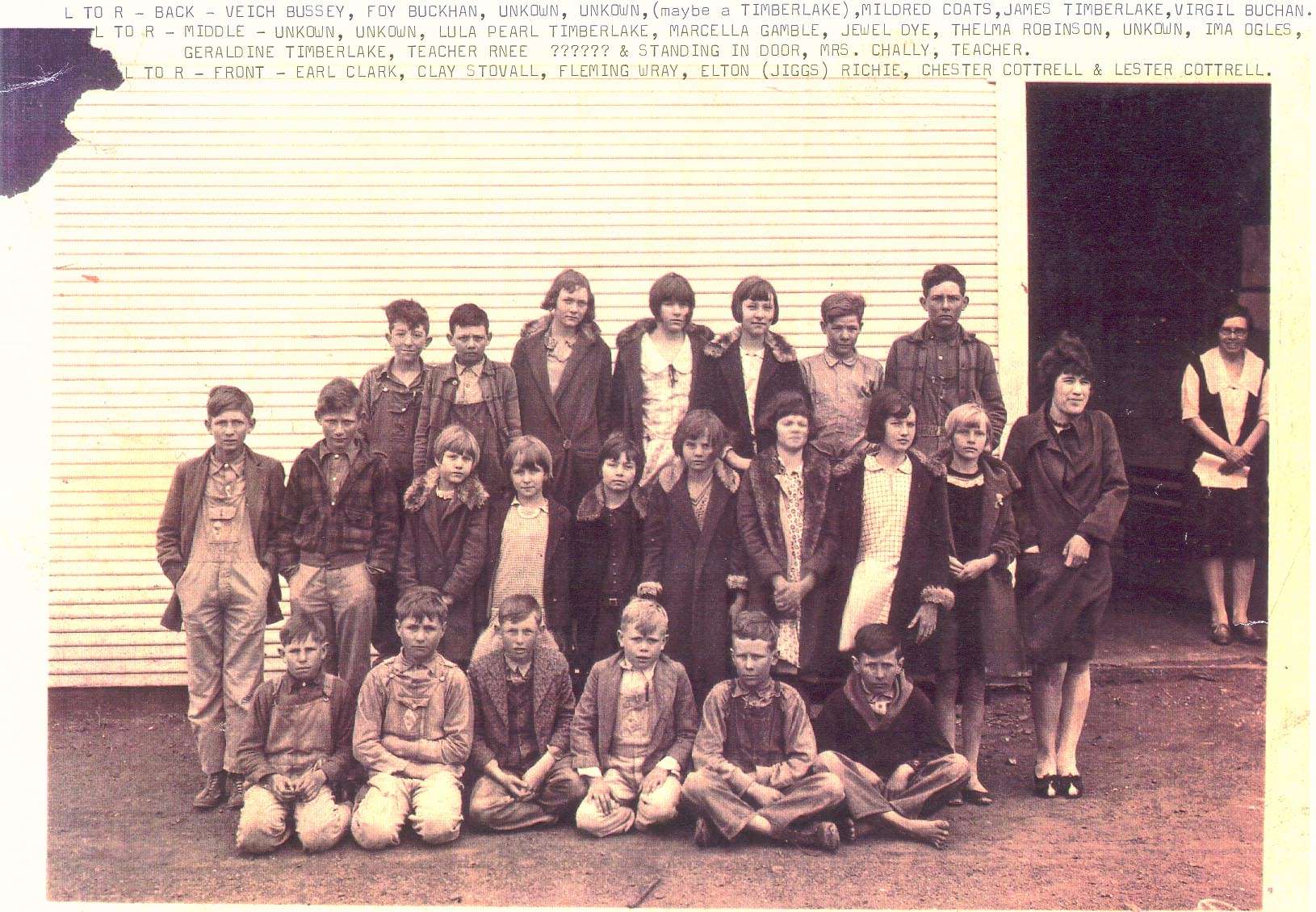 This is a school picture at Blue Grove School. It was located 2 miles East and 1 mile South of Terral, Okla. This was taken in 1921. The two boys in the lower right in the picture are my older twin brothers. *submitted by: Sam Cottrell, 1956 Graduate of Ryan e-mail address: samcottrell@totalnet.us
