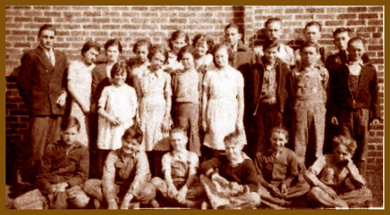 Back Row left to right:: O.M. Custer (teacher), Norma Pumford,