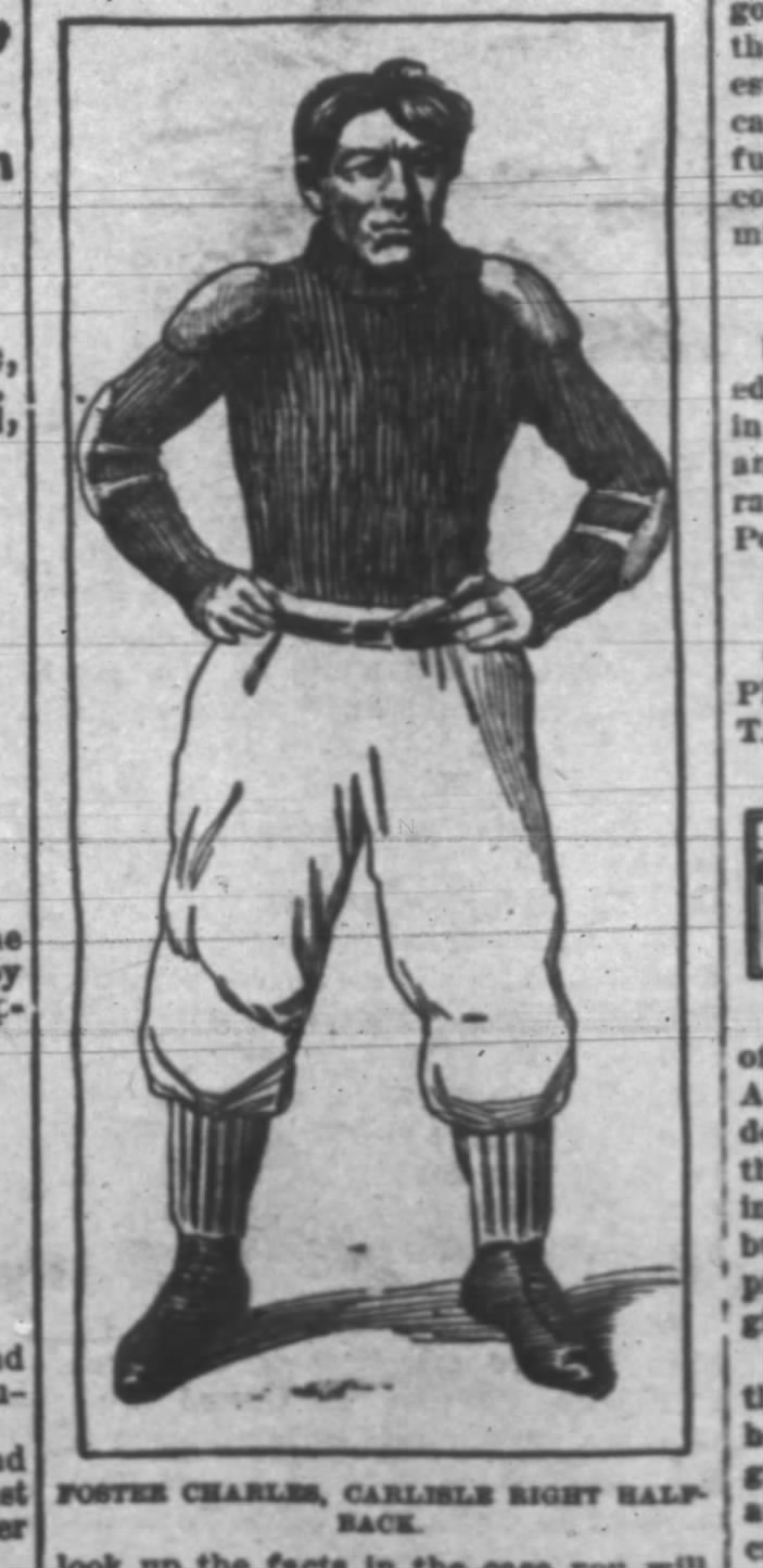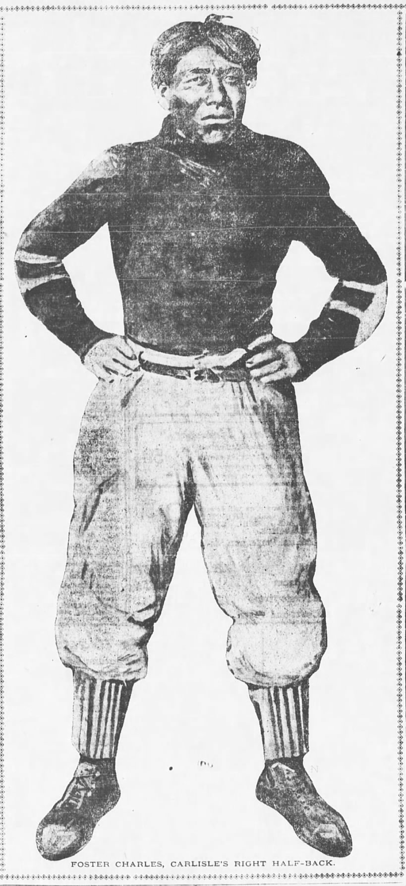 Foster Charles is the only known Paiute (Shivwits-Utah) tribal member to ever play with & star for the Carlisle Indians Football Team. He primarily played in 1902 and was a star running back while the 1st string right halfback was out for injuries.