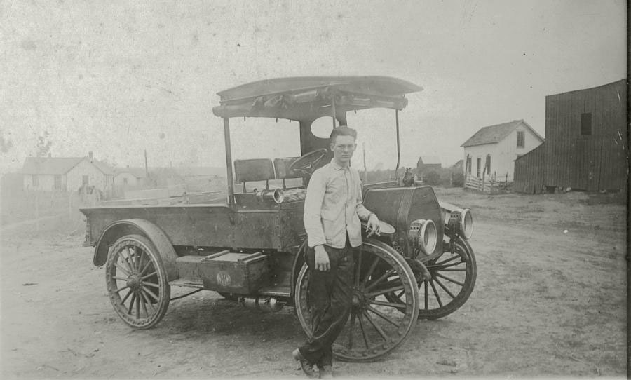 My grandfather, Bryan Robertson, and most likely his first truck, taken in Avery, probably around 1917. Bryan and his wife Elva owned and operated the first service station in Avery. The truck was most likely used soley for hauling groceries and other goods from the depot and Cushing to their store.