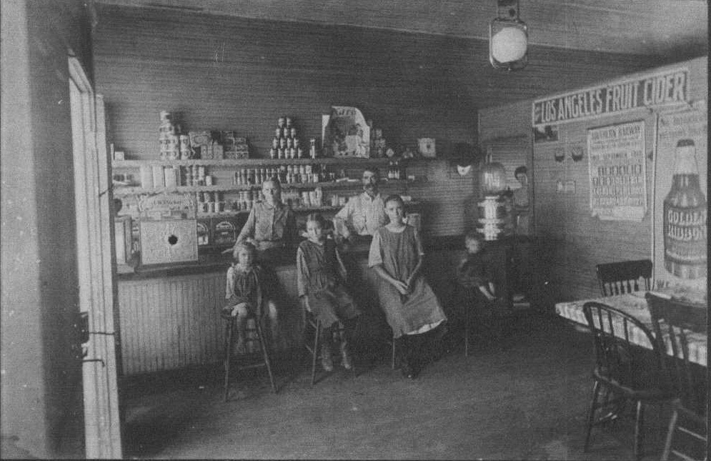 Parker's restaurant again. This time in the inside. Shown is back row Emma Krogman-Parker, J.W. Parker. Bottom row: left to right, Allie Parker-Coleman, Clara Parker-Fisher, Ethel Parker-Henry, Clarence Henry. Lady in the background is the cook and I don't know her name. The date on the calender is September 1913.