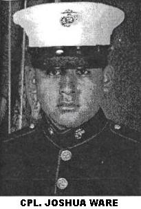 APACHE — Services for Corporal Joshua J. Ware, 20, of Apache will be held at 10 a.m. Saturday, Nov. 26 at the Comanche Community Center in Apache, with the Rev, Sharon Gomez, the Rev. Kim Mammedaty and the Rev. George Daingkau officiating A prayer service will be held at 7 p.m. Friday, Nov. 25 the Comanche Community Center in Apache. Cpl. Ware was born on May 25, 1985 at the Lawton Indian Hospital and was killed in action Wednesday, Nov. 16, 2005 during Operation Steel Curtain in Ubaydi, Iraq He was preceded in death by his maternal grandparents, Erwin and Jessie Ware and Vicki Tate; his grandpas, Albert and Defford Oyebi; his grandmother, Lutie Cody; his aunts, Tommie Lee Cody and Pearl Cody-Ruiz, and a brother, Lester Parker Jr. He was assigned to Battalion Landing Team, 2nd Battalion, 1st Marine Regiment, 13th Marine Expeditionary Unit, I Marine Expeditionary Force based in Camp Pendleton, Calif., and attached to the 2nd Marine Division, II Marine Expeditionary Force (Forward). He was on his second "Tour of Duty" in Iraq at the time of his death. He attended school in Apache and graduated from Roland High School in eastern Oklahoma May 22, 2003. Cpl. Ware participated in football, baseball, track and the Future Farmers of America while in high school. He was a member of the United Methodist Church of Apache. He enlisted in the U.S. Marine Corps five days after graduating from high school. He graduated from the 13 week recruit training "Boot Camp" at the U.S. Marine Corps Recruit Depot in San Diego. After "Boot Camp," he completed the US Marine Corps 8 week "School of Infantry" at Camp Pendleton. His initial assignment was with F Company, 2nd Battalion, 1st Marine Division at Camp Pendleton. They were deployed to Iraq and arrived on March 1, 2004. Their Forward Operation Base was Camp Bahria. He and his fellow Marines participated in the second major Battle of Fallujah. It was during this battle that Cpl. Ware and five other Marines graced the pages TIME magazine, dated April 19, 2004, with a photo called "Streets of Fire." He and his unit returned to Camp Pendleton on Oct. 2, 2004 after spending 216 days in Iraq. He was redeployed aboard the USS Cleveland July 10, 2005. Their training stops were in Hawaii, Australia and Egypt prior to landing in Kuwait on/about Oct. 16. Cpl. Ware was based at Camp Fallujah shortly thereafter. A New York Times news release said the following about the action that occurred on Nov. 16th: "Five Marines were killed and 11 wounded on Nov. 16th in an ambush at a farmhouse while hunting for insurgents. Testimony by survivors of the ambush indicated that a squad had just entered a farmhouse when an explosion occurred, possibly from a hand grenade or a homemade bomb planted by the rebels. The blast inflicted at least one casualty and as squad members struggled to extract the fallen Marine, insurgents hiding in the house attacked them with small arms and a lot of grenades. The dead and wounded were recovered from the farmhouse and 16 rebels in the house and its vicinity were killed during the gun battle." Cpl. Ware died from small arms fire. His decorations, medals, badges, citations and campaign ribbons include the Global War on Terrorism Service Medal; the Global War on Terrorism Expeditionary Medal; the National Defense Service Medal; the Navy Sea Service Deployment Ribbon with/2 Bronze Service Stars; the Purple Heart Medal and the Combat Action Ribbon w/1 Gold Service Star. The U.S. Navy and Marine Corps Achievement and Commendation Medals are pending approval by the Department of the Navy. Cpl. Ware was an enrolled member of the Kiowa Tribe and also of Comanche descent. He is the ninth Kiowa and 12th Comanche service member to die as a direct result of combat. Both tribes last lost a tribal member in 1968 during the Vietnam War. He is survived by his parents, Randy and Alicia Mammedaty of Apache; three brothers, Dustin, Sky and Daniel, all of Apache; two sisters, Randi of Apache and Libby Parker of Oklahoma City; two step-brothers, Randy Mammedaty Jr. of Mountain View and Kevin Mammedaty of Oklahoma City; two step-sisters, Dawn Cheri Autaubo and Melanie Pahcoddy, both of Anadarko; his paternal grandparents, Patrick and Nancy Oyebi of Tahlequah; his grandpa, Fred Oyebi of Crow Agency, Mont.; his adopted brother, Joseph Calvaruvias; his adopted sister, Kara Koassechony, and a special niece, Kiya Ware. Burial will be in the Rainy Mountain Indian Cemetery, located southwest of Mountain View under the direction of the Comanche Nation Funeral Home of Lawton. The 2nd Battalion, 14th Marines, 4th Marine Division from the Armed Forces Reserve Center in Oklahoma City will provide full military honors. Honorary pallbearers will be his brothers, Dustin, Sky, Daniel and Joseph, his uncles Montey, Frank, Tommy and Ralph Mammedaty, Jerico and Michael Ware and Michael Pewo. The Kiowa Black Leggings Warrior Society, Comanche Indian Veterans Association and Auxiliary, Native America Marine Corps Veterans, Southwest Chapter of Vietnam. Veterans, Kiowa War Mothers, Carnegie Victory Club will present traditional honors. The Oklahoma City Highlander Bagpipe Band and the United Methodists Church Choir of Apache will provide music at the prayer service. Memorial contributions on behalf of Cpl. Ware can be sent to Shamrock Bank of Apache where a special fund has been set up. Written by Lanny Asepermy, Kiowa/Comanche, Sgt Maj (Retired) US Army and Vietnam War Veteran. A meal will be provided by the United Methodist Church of Apache after the funeral services at the Comanche Community Center.