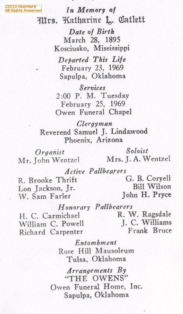a nephew of Mrs. Catlett's, the Rev. Samuel J. Lindawood, Phoenix,