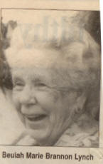 Beulah Marie Brannon Lynch was born Feb. 2, 1914 in Hominy to