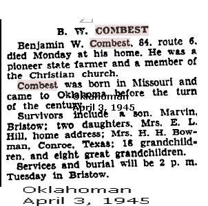 Benjamin W. Combest, 84, route 6, died