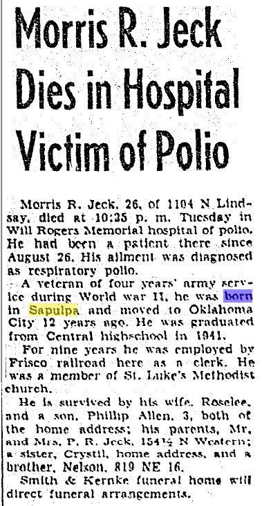 in Sapulpa. and moved to Oklahoma City 12 years ago. He was