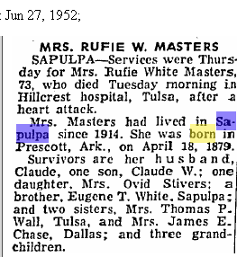 Mrs. Masters had lived in Sapulpa since