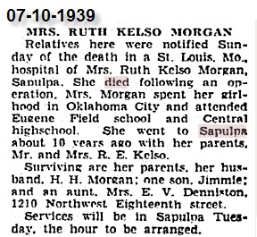 Morgan, Sapulpa. She died following an operation. Mrs. Morgan