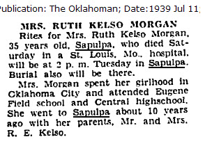 the death in a St. Louis. Mo., hospital of Mrs. Ruth Kelso