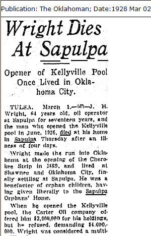 H. "Cal" Wright, pioneer capitalist of Sapulpa, who died here in