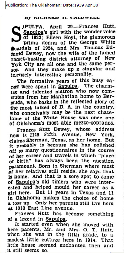 George White scandals of 1924 and Mrs. Thomas Edmond Dewey, now