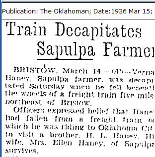 His wife, Mrs. Ellen Haney, of Sapulpa