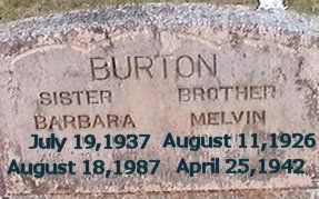 Brother Melvin Burton 1926 ~ 1942 Sister Barbara Burton 1937 ~ 1937