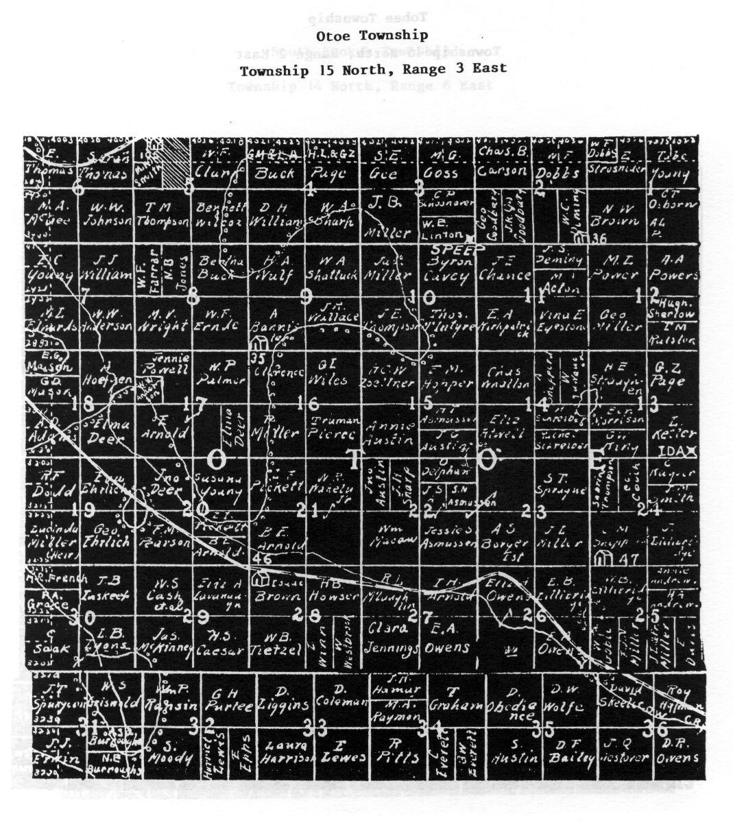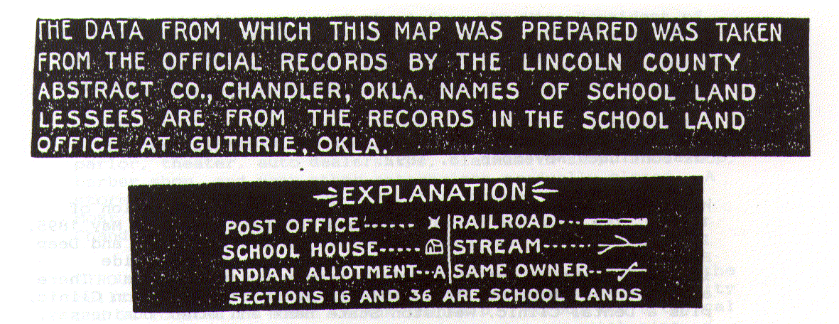NOTE: These are not necessarily the names of the people who were successful in the Land Run of 1891 or true first landowners, but are the people who had the properties in 1903. To further research the land, note the description of the property you are interested in (section, township, and range numbers) and contact the Clerk of the County Court, Chandler, OK.