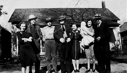 From left to right: Billie Cobb Hollis, Ike Hollis, Bethel Cobb, Leo Cobb, Beulah Dickinson Cobb, Connie Steeley Cobb, William Radford Cobb. Baby is unknown.