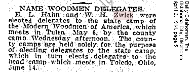 (Bim) Zwick b: July 23, 1907 in Oklahoma Territory d: August