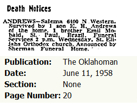 You found this information at //www.okgenweb.net/~okoklaho/obits2012/andrews_selma.htm |