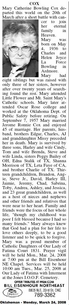 Tues., Mar. 25, 2008 at Our Lady of Fatima with Interment at the