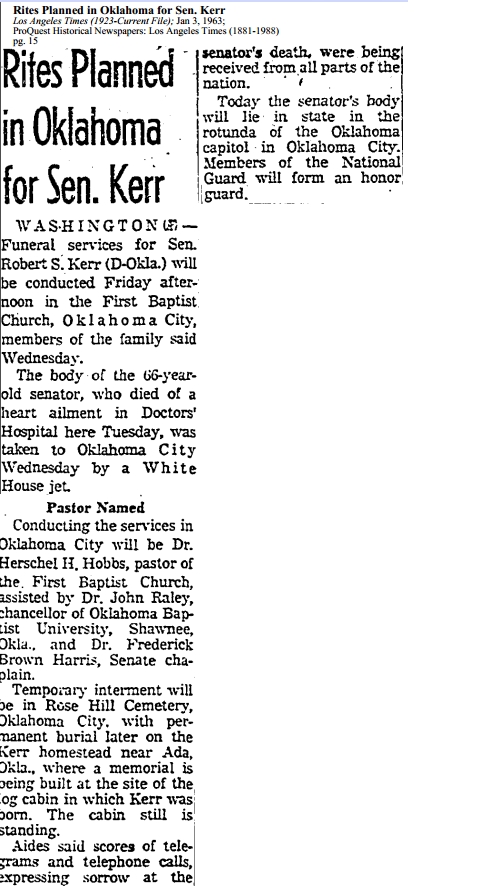 Kerr (D-Okla) will be conducted Friday afternoon in