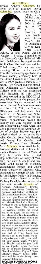 Oklahoma, February 10, 2004, at the age of 22 years,