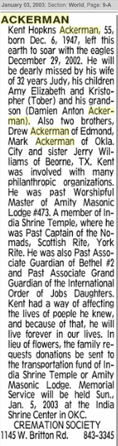 Edmond, Mark Ackerman of Okla. City and sister Jerry Williams of