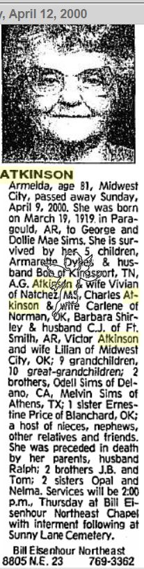 You found this information at //www.okgenweb.net/~okoklaho/obits2017/atkinson_amelda_sims.htm | ||