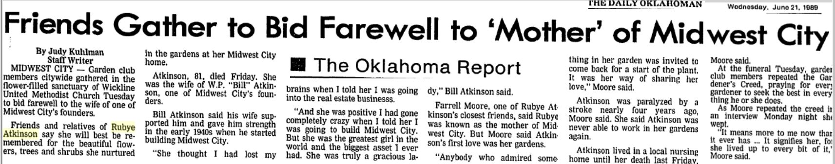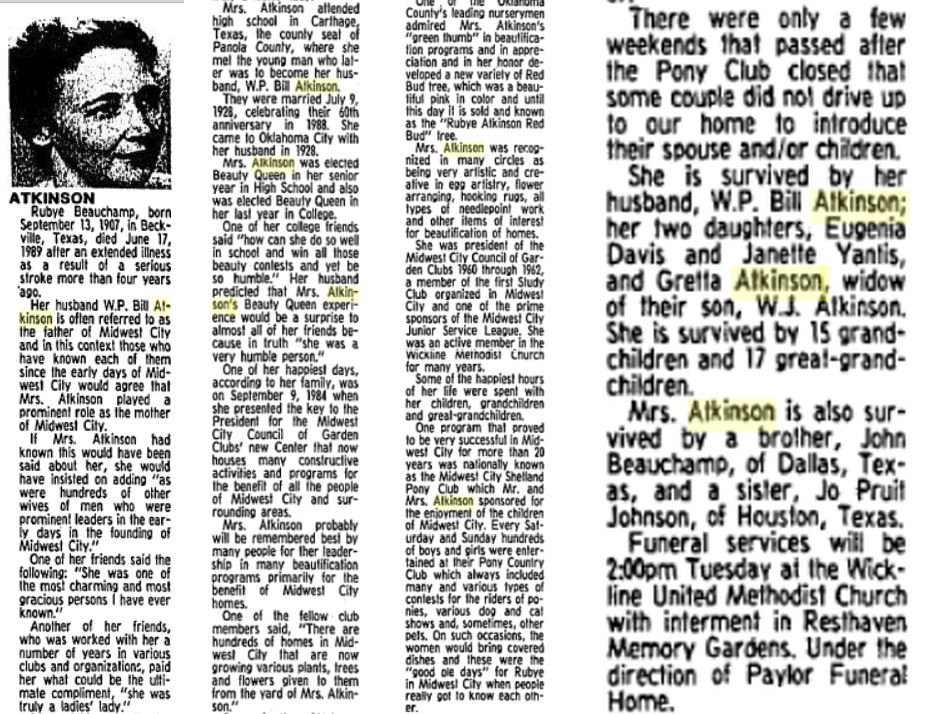 She is survived by her husband, W.P. Bill Atkinson;