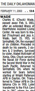 Charles E. (Chuck) Wade , passed away Feb. 8, 2003,